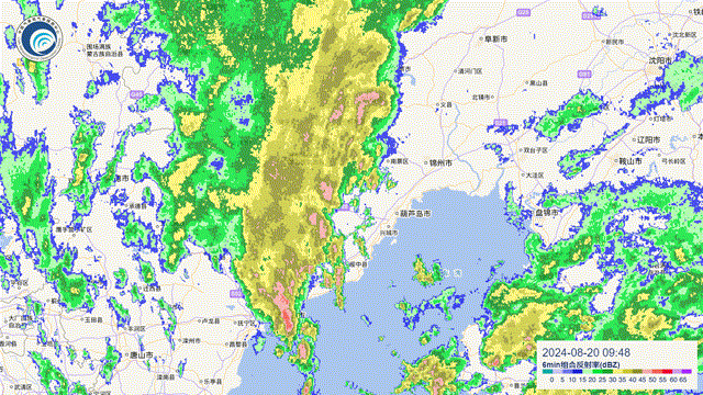 2024年8月20日9时42分至11时42分,葫芦岛强降水地区雷达组网拼图 来源:中国气象局气象探测中心